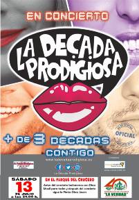 A las 24:00 h.: Para festejar el 40 Aniversario de la Asociación, la Actuación estelar de LA DÉCADA PRODIGIOSA.